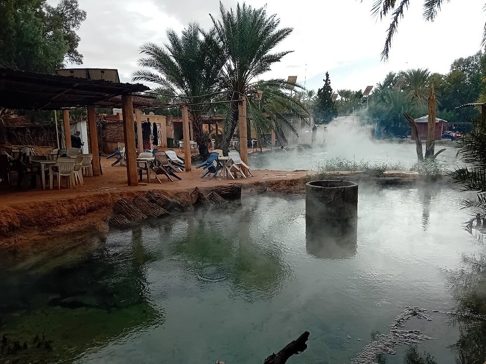 Arrival at Ksar Ghilaine oasis, where golden dunes meet a natural hot spring.